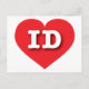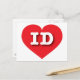Esta postal tiene un vibrante corazón rojo que contiene la identificación de las letras negrita, blanca y superior del funda, la abreviatura oficial de Idaho, el estado de la gema. El lado inverso de la postal está en blanco, a la espera de tus sentimientos escritos a mano o de tu texto personalizado.