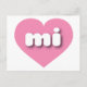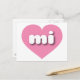 Esta postal tiene un corazón fresco rosado que contiene las letras negrita, blanca, redondeadas de funda inferior mi, una abreviatura juguetona para Michigan, el estado de los Grandes Lagos. El reverso de la postal está en blanco, esperando el texto personalizado o los sentimientos manuscritos.