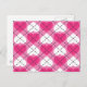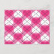 Esta postal presenta un patrón de argyle de corazones blancos y rosados calientes. El reverso de la postal está en blanco, esperando el texto o los sentimientos escritos a mano.