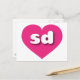Esta tarjeta presenta un vibrante corazón rosado caliente que contiene las letras negrita, blanca, redondeadas de funda inferior sd, una abreviatura juguetona para Dakota del Sur, el estado del monte rushmore. La tarjeta está en blanco en el interior, a la espera de tus sentimientos escritos a mano o de tu texto personalizado.