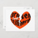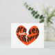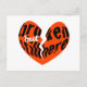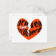 Postcard con corazón rojo diciendo "Roto pero todavía aquí". Saca tus emociones con esta postal y muestra a la gente que un corazón roto no puede detenerte de nada.