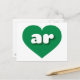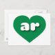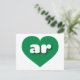 Esta postal cuenta con un corazón verde vibrante que contiene las letras fundas audaces, blancas y redondeadas inferiores, una abreviatura divertida para Arkansas, el estado natural. El lado inverso de la postal está en blanco, a la espera de tus sentimientos escritos a mano o de tu texto personalizado.