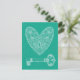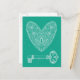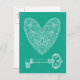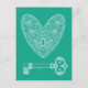 Postal Corazón y clave bloqueados sobre fondo verde esmer