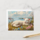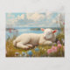 Postal Cordero de primavera durmiendo en prado de flores