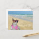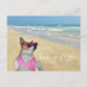 Esta bonita postal de la playa de corgi cuenta con un gracioso Corgi galés Pembroke vestido con un bikini rosa bonito y gafas de sol mientras se toma el sol en una hermosa playa. Un perro divertidísimo en la tarjeta de ropa para alguien que ama el humor corgi y las fotos de verano en las vacaciones. Deje el texto como Pensamiento de Usted o lo personaliza con su propia cita.