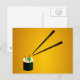 Este diseño es de un lindo rollo de sushi con arroz, pepino, zanahorias y aguacate envuelto en algas. Un par de lujosos palillos negros vienen de un gran ángulo para matar. El rollo de sushi está en un lado de la parte inferior y los palillos en el otro lado de la parte superior. Fue diseñado para estar fuera del centro. Excelente en muchos productos de Zazzle. Sin embargo, dado que el arroz es de color crema y los palillos y las algas son muy oscuros, el diseño se ve mejor en ciertos colores. He añadido un fondo dorado para varios de los productos; este fondo se puede eliminar fácilmente.