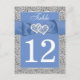 This cornflower blue and simulated silver foil wedding table number postcard with PRINTED ON ribbon and glitter joined hearts brooch will be a perfect addition to your wedding reception table decor. You must change the number 12 to each number that you need, add it to your cart, and then come back and repeat the process with each number that you need. Quantity discounts may apply once you add all the items to your cart. If you have any questions, contact niteowlstudio@gmail.com.