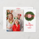 Letrero de “Merry Christmas” en corona de boj. Colores navideños tradicionales rojos y verdes. Agrega tu foto para personalizar.