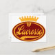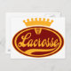 Lacrosse es King. Guay, diseño de señalización retro. Óvalo con letras cursivas de la palabra lacrosse con el símbolo de la vara lacrosse en el interior. Adornado con corona vintage. Versión de cimarrón y oro.