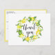 Tarjeta de agradecimiento brillante y botánica para su evento. Cuenta con una corona de acuarela de limones, flores de limón y follaje. Personalice agregando su dirección de devolución y mensaje. Esta tarjeta de agradecimiento de corona de limón es perfecta para bodas de verano, duchas y mucho más.