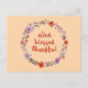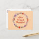 Tarjeta de corona de flores con letras a pincel de acuarela pintadas a mano y mensaje "Vivo Agradecido Agradecida" en la parte delantera y mensaje editable en la parte trasera. Las frases perfectas para poner en una tarjeta o enviar en un mensaje a amigos, familiares o colegas.