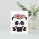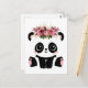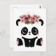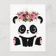 Postal de panda lindo. El oso panda blanco y negro kawaii con corona floral.