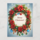 Corona de Navidad brillante y alegre adornada con poinsettias vibrantes, adornos brillantes, copos de nieve y cintas en un fondo cálido y suave que simboliza la alegría y las celebraciones navideñas.