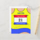 Tarjeta postal de chaleco amarillo personalizable para deseos de cumpleaños, buena suerte o simplemente para registrar un tiempo logrado en un evento o encuentro de atletismo o carrera.