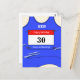 Tarjeta postal de chaleco azul personalizable para deseos de cumpleaños, buena suerte o simplemente para registrar un tiempo logrado en un evento o encuentro de atletismo o carrera.
