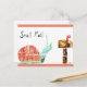 Postcard, titulado Correo de caracol, hecho de sellos antiguos usados del mundo