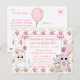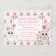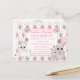 El gatito personalizado de gatito, ratón y quequitos rosados de llama dibujados a mano y dobla las invitaciones para fiestas de cumpleaños del chica.