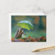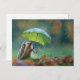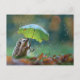 Postal Corte erizo sosteniendo un paraguas de hoja
