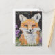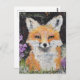 Postal Corte Red Fox Purple Flowers Mixed Media