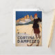 Poster mostrando a una mujer posada en las pistas de esquí de Cortina d'Ampezzo.