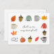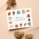 Este bonito diseño de otoño está decorado con pequeños ilustraciones de temática dulce de la Caída. Los colores ricos y cálidos y los detalles exquisitos capturan la esencia de la temporada, lo que lo convierte en una elección perfecta para una variedad de ocasiones de otoño.