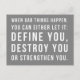 "Cuando suceden cosas malas, puedes dejarlo: definirlo, destruirlo o fortalecerlo", cita.