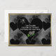 Una delgada línea blanca forma un corazón negro sobre negro con una araña y un cráneo que atrapó hace mucho, un rosa gris con hojas verdes y palabras blancas que dicen "Me gusta el chocolate, largos paseos por la playa y jugar con cosas muertas.