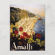 poster de viajes vintage de italia en el siglo XX. La tarjeta postal italiana de viaje es un ilustracion retro que presenta el paisaje y acantilados de la costa Amalfitana de Italia, y también publicidad de viajes europeos. Visita nuestro sitio para más Posters de Viajes Vintage.