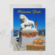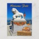 ¡Bienvenida Caída! Esta hermosa postal muestra la foto de uno de los dos galantes leones de mármol blanco que vigilan la entrada del Puente de Leones que conecta el centro de la "Ciudad Vieja" Saint Augustine con la isla de Anastasia. El fondo incluye numerosos veleros y embarcaciones ancladas en la bahía de Matanzas, que forma parte de la vía fluvial intracoastal. Hojas de otoño coloridas, balas de heno, calabazas y un arco estacional en la linterna completan la impresionante escena costera del otoño. El texto de la parte delantera dice "Bienvenida Caída" que puede ser fácilmente borrada o editada para personalización sin costo adicional. Fotografía y diseño de Glenda Motsavage, escritor y autor de viajes con sede en Florida.