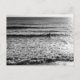 Una fotografía en blanco y negro de surfistas en el mar a lo largo de la costa de Shonan de Japón.