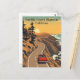 Dé un paseo panorámico por la emblemática carretera de la costa del Pacífico de California con esta tarjeta postal de viajes de estilo vintage. Con caminos sinuosos a lo largo de acantilados dramáticos, un crucero convertible y el Océano Pacífico al atardecer, este ilustracion capta el espíritu de la travesía por carretera más avanzada de Estados Unidos. Una necesidad para coleccionistas y amantes de los viajes por igual.
