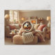 Esta encantadora postal captura la esencia de la comodidad de invierno con una deliciosa imagen de un manto envuelto en una manta cálida. La expresión del contenido del terracota y las texturas incansablemente suaves de la manta y de la habitación circundante evocan sentimientos de comodidad y relajación. La paleta de colores cálidos, con tonos marrones, cremas y toques de melocotón, aporta un toque de tranquilidad. Perfecto para enviar saludos de invierno, notas de agradecimiento o simplemente un toque de alegría, esta postal le hará sonreír a cualquiera. Es un dulce recordatorio de los placeres simples de permanecer cálidos y acogedores durante los meses más fríos.