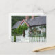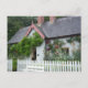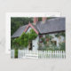Esta postal alberga una casa de campo irlandesa, decorada con hermosas viñas. Se trata de una casita de campo de una sola planta, azul pálido, deshabitada, con una valla blanca alrededor del perímetro.