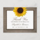 Estas postales de agradecimiento son perfectas para cualquier pareja que planee una boda rústica de campo. El diseño cuenta con un hermoso y luminoso girasol en un ambiente rústico con efecto burlap. El diseño rústico puede ser personalizado para adaptarse a su evento especial y será la tarjeta de agradecimiento perfecta para cualquier fiesta de la moda de país, incluyendo duchas de novias, compromisos, duchas de bodas, fiestas de cumpleaños y mucho, mucho más.