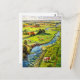 Acrylic fantasy painting of a peaceful countryside with grazing cows, a winding stream, green fields, and red-roofed barns under a clear sky. The bright colors and stylized composition evoke rural charm, pastoral serenity, and a timeless farming landscape. Ideal for home decor, nature-themed products, calendars, greeting cards, and editorial use.