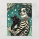 Un payaso de circo con estampado de cebra sostiene un hermoso gato negro de arte generado por IA