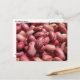 Esta postal cuenta con hermosos granos de arándano estampados, recién recolectados y descascarados. Los granos de arándano son conocidos por varios nombres como borlotti, frijoles hortícolas franceses o solamente granos de concha. Su nombre proviene de su apariencia varicolada. Por lo general son de color blanco, rosa o crema con marcas de rojo profundo o arándano que se distribuyen en diferentes patrones en el frijol. Tienen un sabor suave que es algo comparable a las nueces.