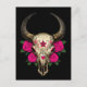 Postal Cráneo de azúcar de toro con rosas rosadas en negr