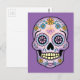 El cráneo de azúcar morado de los Muertos es tan colorido con flores, corazón y diamantes.