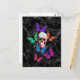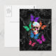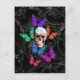 Postal Cráneo de la fantasía y mariposas coloreadas