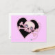 El cráneo rosado y los huesos cruzados se colocan sobre un corazón negro con un contorno de neón rosado y una cadena de tracción. ¡Esta es una linda postal que todos amarán!