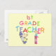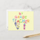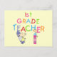 Un lindo palo de chicas y lápices de colores con un texto colorido que dice "Profesor de primer grado" en camisetas de profesores, tazas, tarjetas, mousepads, bolsas de té y otros artículos de primera clase para profesores y regalos.