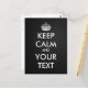 Personalizable completo de la postal "Keep Calm and Carry On" basada en el poster británico de la Segunda Guerra Mundial, ¡sobre un fondo negro de patrón metalizado! Puede cambiar fácilmente el texto introduciendo el suyo propio en los campos de texto, etc! Incluso puede agregar sus propias imágenes o cambiar la imagen de la corona existente. ¡Sé creativo y explícate! :-)