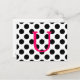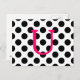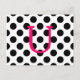 La letra monograma es personalizable. Puede borrar la imagen de la letra y utilizar el sistema para elegir un color rosa brillante y su fuente favorita. Si te gusta esta sombra, el código es FF0066. Letra rosa brillante U con fondo de patrón polka blanco y negro.