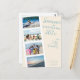 Captura y comparte tus recuerdos de verano favoritos con esta postal de vacaciones de personalizable! Con un diseño elegante de franjas fotográficas blancas sobre un vibrante fondo beige de playa, esta plantilla de postal le permite añadir cuatro fotos personales de vacaciones. Personalízalo más con texto personalizado para tu destino de vacaciones, fecha o un mensaje reflexivo. Perfecto para enviar saludos de sus viajes o mantenerse como un placer. Añadir 4 de sus propias fotos Campos de texto editables para mensajes personalizados Color azul turquesa brillante del fondo marino para una vibración veraniega Ideal para vacaciones en la playa, vacaciones tropicales o viajes por carretera de verano Excelente para recuerdos, viajes o envío a amigos y familiares Crear una postal única que capte la esencia de su escapada de verano!