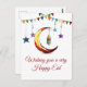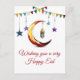 Tarjetas Eid Mubarak para los musulmanes, diseñar esta postal con una cresta y linterna de color islámico, puedes personalizar esta carta con el saludo de Eid y enviarla a cualquiera que ames. "imagen: Freepik.com