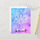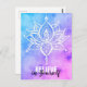 Una preciosa postal con un Lotus Mandala in White sobre un fondo de color rosa, azul, violeta y acuático, y una cita motivacional "Crea en ti mismo" que puedes cambiar con la tuya desde el menú personalizado. La flor Lotus Mandala es un símbolo para elevarse sobre el mundo material y una unión con el Universo Espiritual. Dibujado a mano por SunFreeStar.