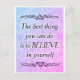 Créate en ti mismo - Elegante Diseño de Citas Motivacionales Alimenta tu espacio y tu espíritu con este diseño bellamente diseñado con la cita empoderadora: "Lo mejor que puedes hacer es CREER en ti mismo". Enmarcado en un delicado y vintage patrón de encaje con floridos ornamentales, este diseño irradia un ambiente tranquilo y un estilo atemporal. Perfecto como recordatorio diario en tu pared, escritorio o taza de café, ideal para oficinas en casa, aulas o cualquier persona en un viaje de crecimiento. Este artículo es un regalo reflexivo para amigos, estudiantes, empresarios y soñadores que necesitan ese impulso adicional de confianza.