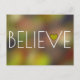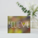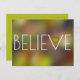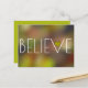 Esta es una bonita postal inspiradora con la palabra 'CREE' impresa en grandes letras blancas sobre un fondo abstracto colorido y divertido. Un bonito corazón dorado está dentro de la letra V.