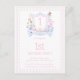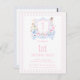 Tarjeta postal de invitación con crestón de monograma de Alicia en el País de las Maravillas para una fiesta de cumpleaños